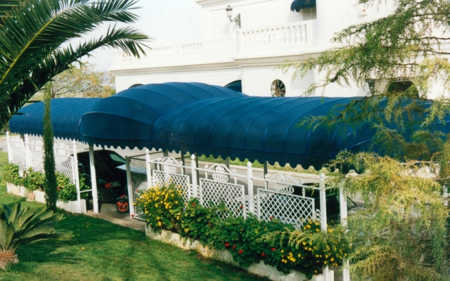 Toldo de carácter decorativo y publicitario, ideal para fachadas de todo tipo de negocios tales como hostelería, comercios, etc.