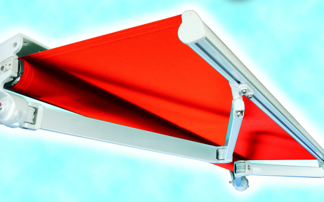 Sus pequeños soportes y su minucioso diseño aportan a este toldo un acabado muy depurado.
