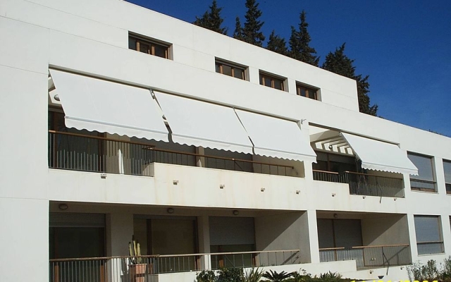 Toldo con brazos invisibles especialmente concebido para su colocación en balcones de pequeñas y medias dimensiones.