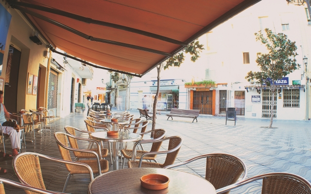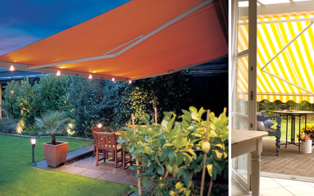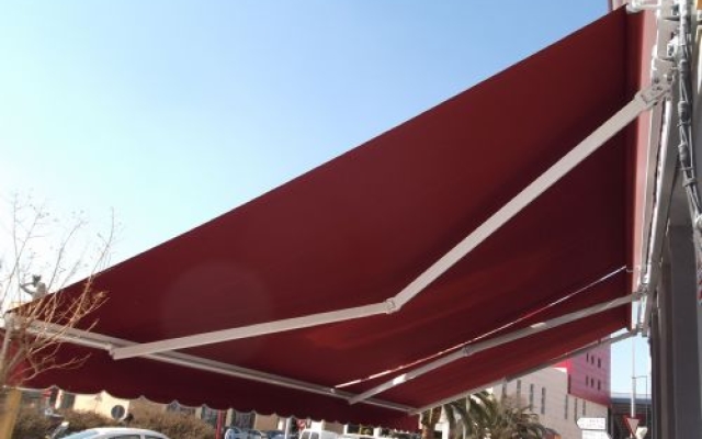 Toldo de la gama brazos invisibles diseñado para cubrir grandes superficies: terrazas de cafeterías, restaurantes, etc.